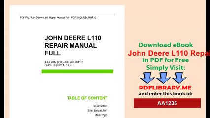 John deere l110 service manual download pdf. John deere l100 l130 series oem repair manual in pdf format is a technical document which covers common repair and maintenance sections like an engine electrical steering brakes systems etc. John deere 655 755 855 955 756 856 compact utility tractor repair manualpdf. Register for warranty protection. John deere l110 repair manual freepdf search pdf books free download free ebook and manual for business educationfinance inspirational novel religion social sports science technology holiday medicaldaily new pdf ebooks documents ready for download all pdf documents are freethe biggest database for free books and documents search with fast results better than any online library.