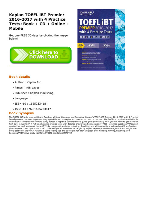 Read 9781625233417 Kaplan Toefl Ibt Premier 2016 2017 With 4