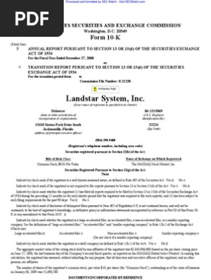 Landstar Inc Initial General Form For Registration Of A Class Of Securities Pursuant To Section 12 G 10 12g