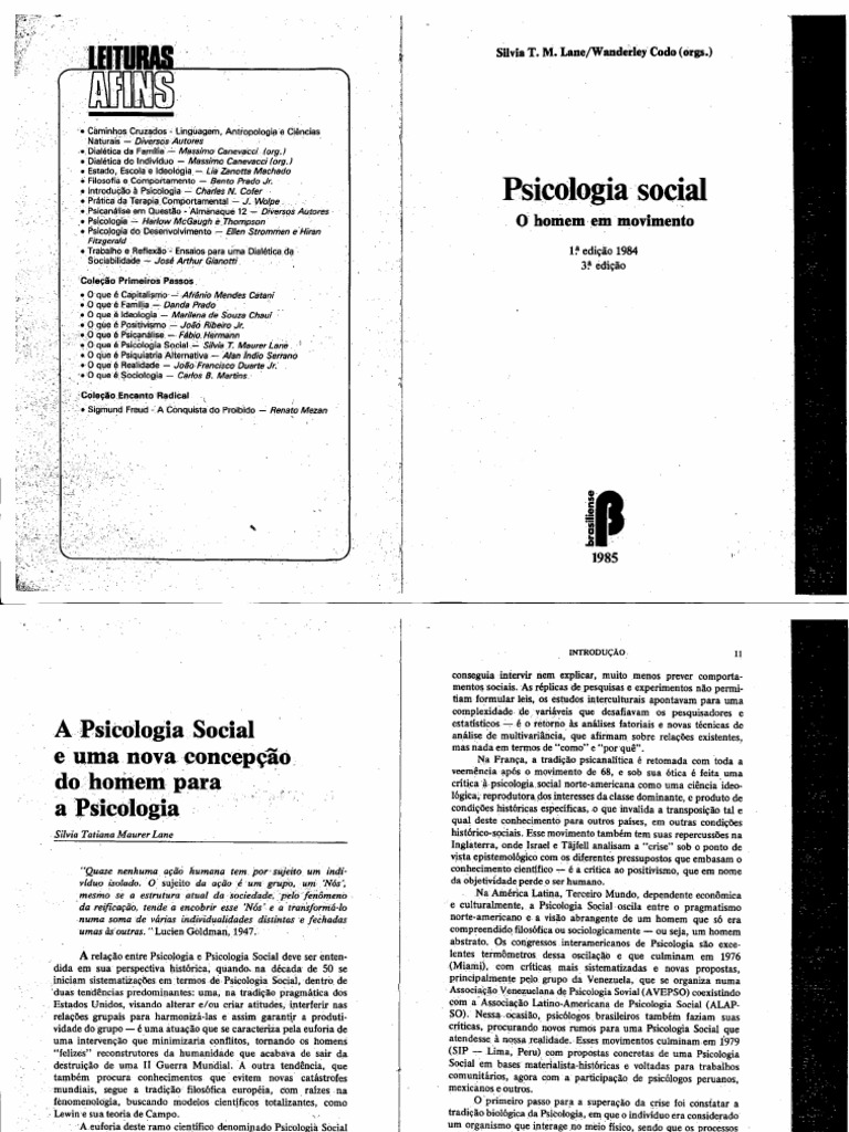 Ciampa antonio da costa. Lane org wanderley codoorg psicologia. Lane participou da producao de seus ex orientandos escrevendo a apresentacao dos livros publicados resultado de suas teses ou dissertacoes como e o caso de azevedo lane 2003. Psicologia social o homem em movimento by castrohm in types books non fiction psychology.