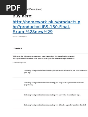 Libs 150 final exam answers pdf. View final exam libs 150 7379 introduction to research 2188 umuc learning management systempdf from libs 150 at university of maryland university college. Libs quiz submissions quiz 21 primary or secondary sourcedocx. Introduction to research tests questions. Angela pilar tate username.