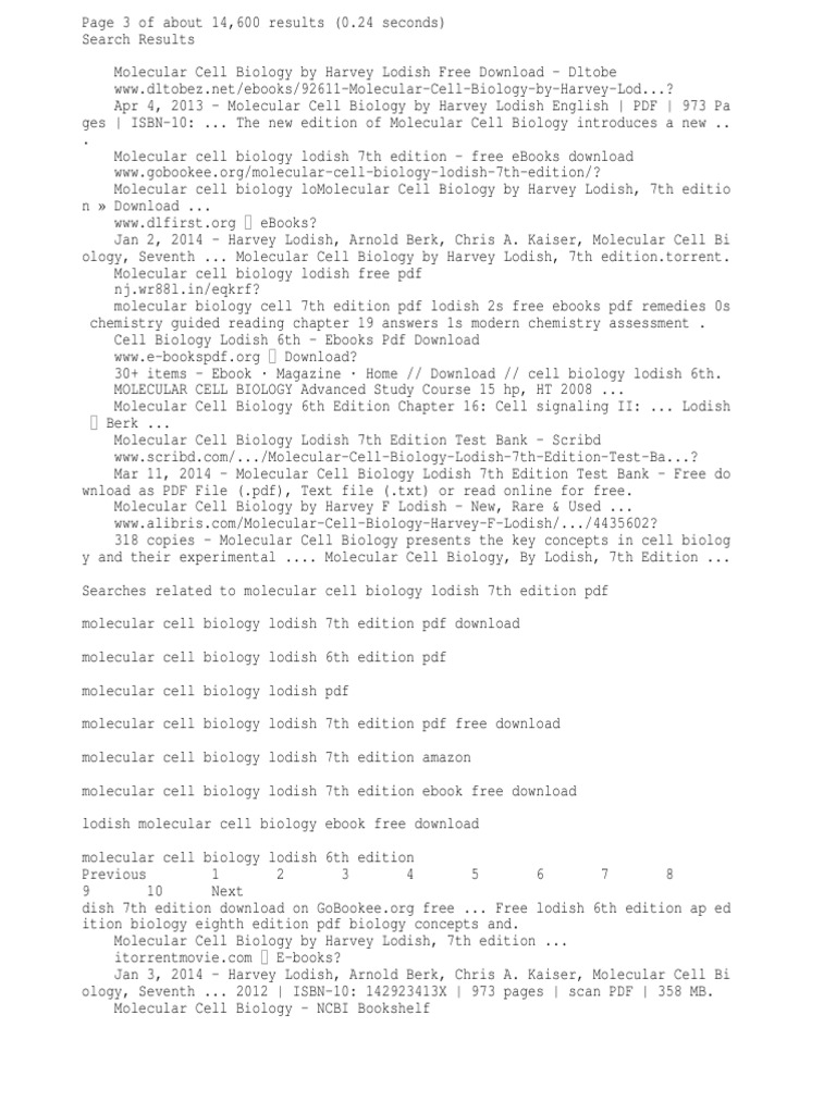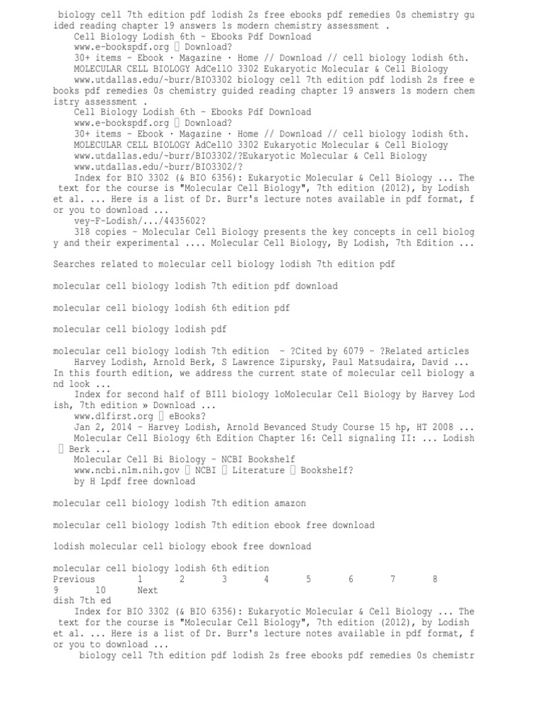 Lodish Molecular Cell Biology 7th Pdf Archive