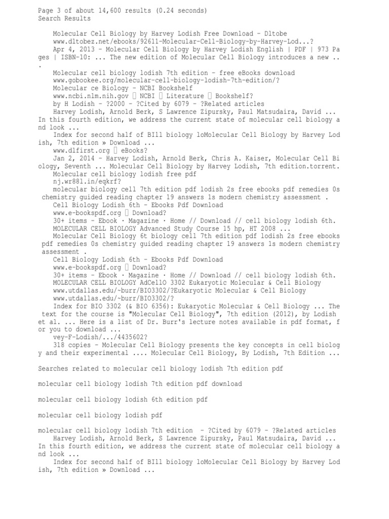 Lodish Molecular Cell Biology 7e Pdf Free Download