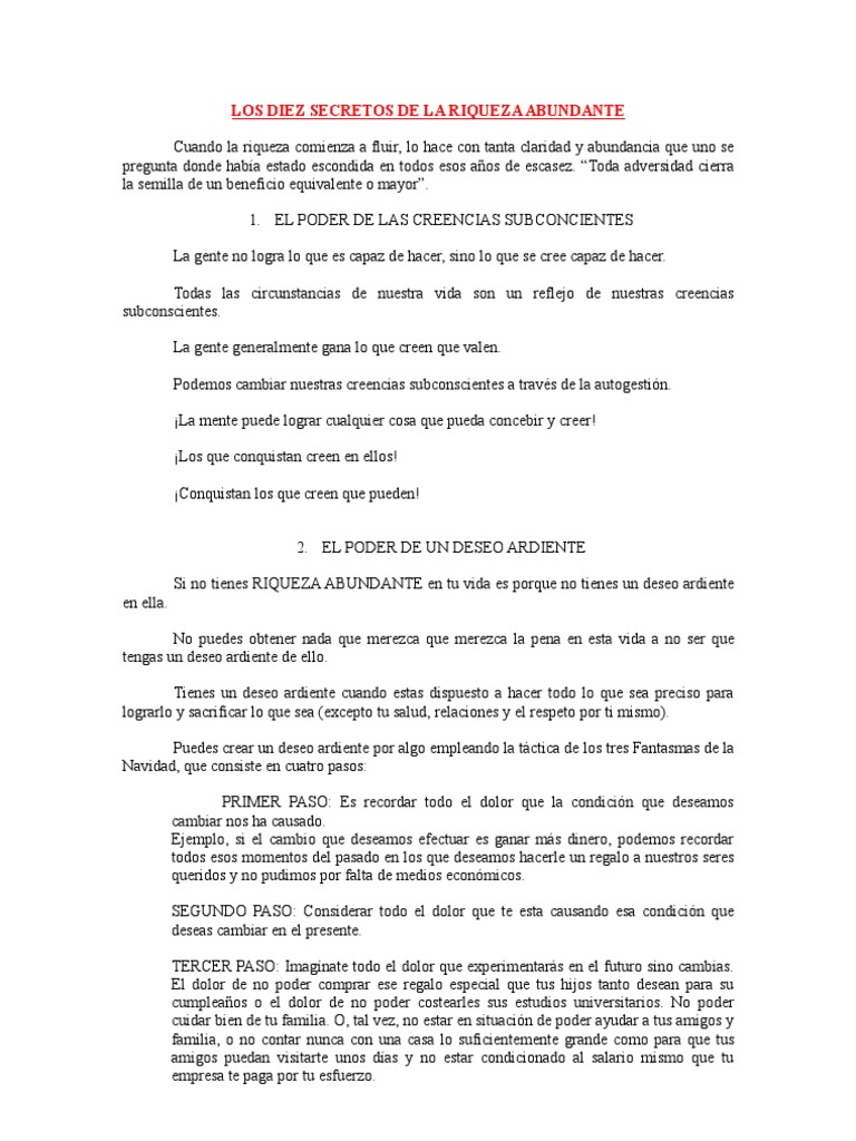 Tu eres el responsable de tu situacion en tu vida y tienes el poder de cambiarla. Puede descargar versiones en pdf de la guia los manuales de usuario y libros electronicos sobre 10 secretos de la riqueza abundante pdf tambien se puede encontrar y descargar de forma gratuita un manual en linea gratis avisos con principiante e intermedio descargas de documentacion puede descargar archivos pdf o doc y ppt acerca 10. 1 el poder de las creencias subconcientes. Menos del 8 de los hombres y del 2 de las mujeres son economicamente independientes a los 65 anos y menos de un 1 podian describirse como adinerados.