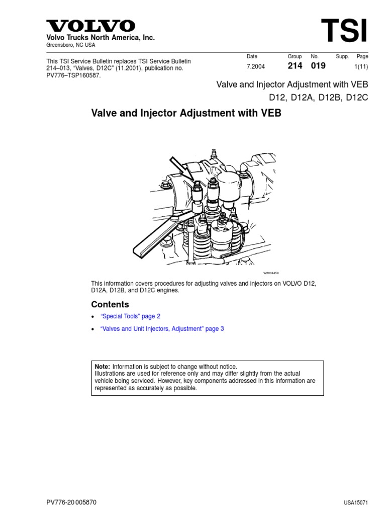 Mack Mp8 Valves Engine Adjustment Service Bulletin Trucks Auto
