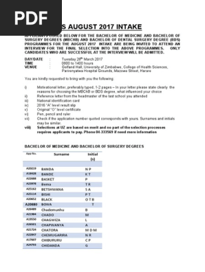 Madziwa Teachers College Intake 2015 Pdf