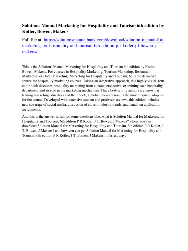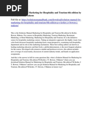Kotler marketing for hospitality and tourism pdfpdf search pdf books free download free ebook and manual for business educationfinance inspirational novel religion social sports science technology holiday medicaldaily new pdf ebooks documents ready for download all pdf documents are freethe biggest database for free books and documents search with fast results better than any. Marketing for hospitality and tourism philip kotler john t. Makens pearson boston columbus indianapolis new york san francisco upper saddle river amsterdam cape town dubai london madrid milan munich paris montreal toronto delhi mexico city sao paulo sydney hong kong seoul singapore taipei tokyo.