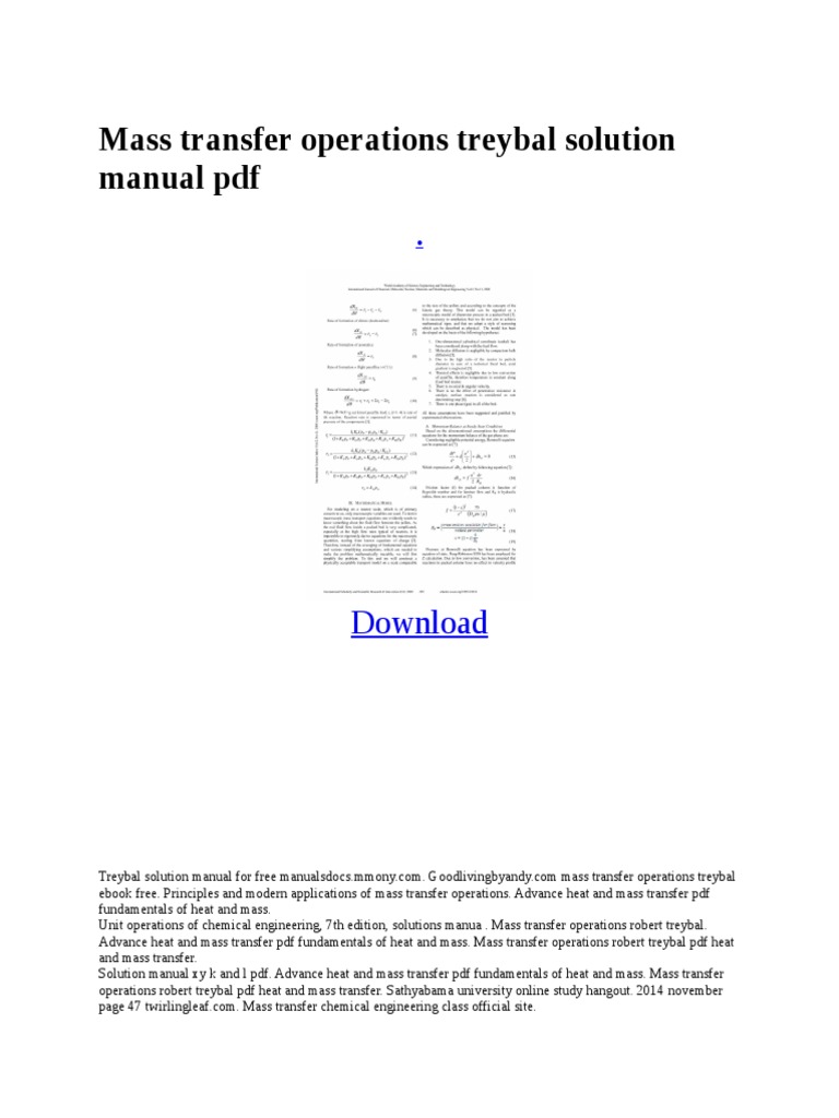 Mass transfer operations robert treybal pdf heat and mass transfer. Mass transfer operations robert treybalpdf google drive. Solutions manual to accompany mass transfer operations.