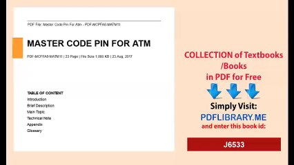 Master Pin Code For Atm Pdf