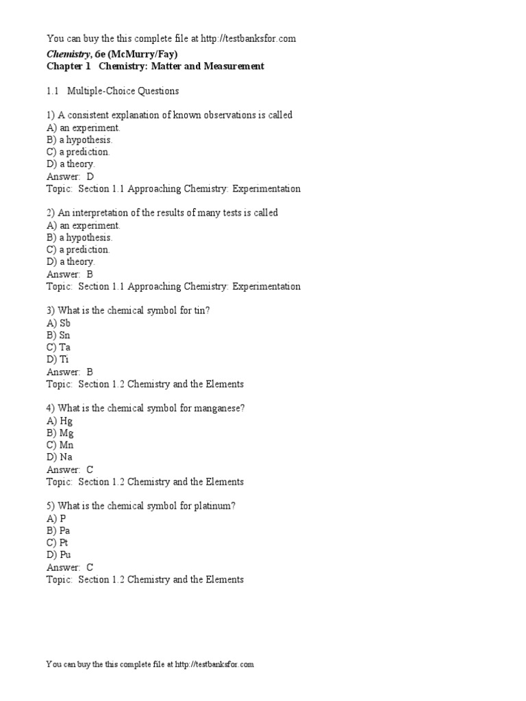 Test Bank For Chemistry 6th Edition By Mcmurry Fay Solution