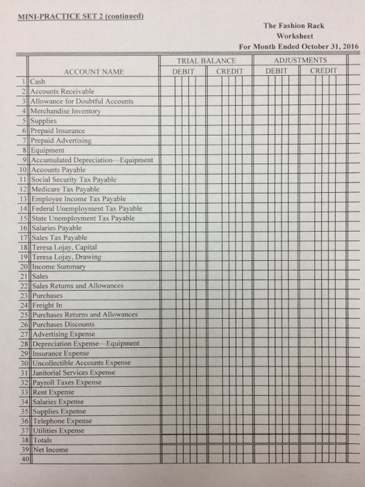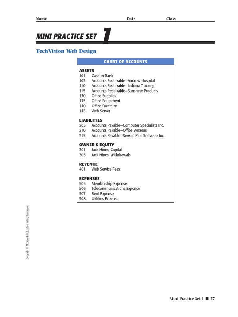 Mini Practice Set Practice Set 1 Continued Dollars Pay To The